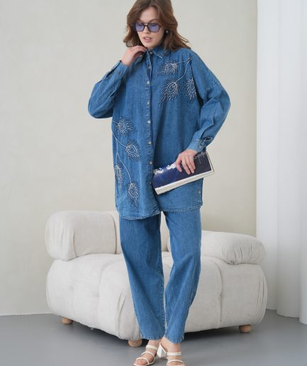 YeniSeçenekler Bu ürünün birden fazla varyasyonu var. Seçenekler ürün sayfasından seçilebilir Favorilerime ekleBoncuk Ve Nakış İşlemeli Kot Gömlek Ve Kot Pantolon Takım