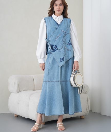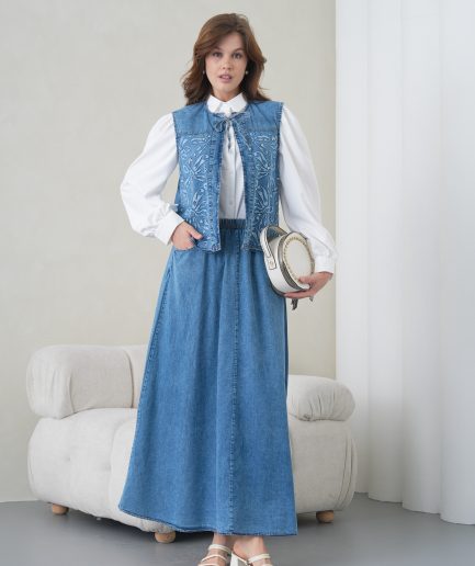 YeniSeçenekler Bu ürünün birden fazla varyasyonu var. Seçenekler ürün sayfasından seçilebilir Favorilerime ekleBoncuk Ve Nakış işlemeli Yelek Ve Kot Etek Takım