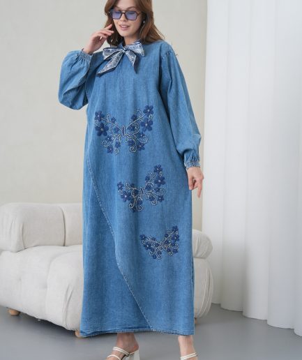 YeniSeçenekler Bu ürünün birden fazla varyasyonu var. Seçenekler ürün sayfasından seçilebilir Favorilerime ekleBoncuk Ve Nakış İşlemeli Fularlı Geniş Kalıp Uzun Kot Elbise