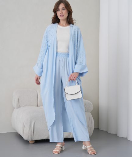 • Boncuk İşlemeli Cupra Kimono Hırka Ve Pantolon TakımYeni