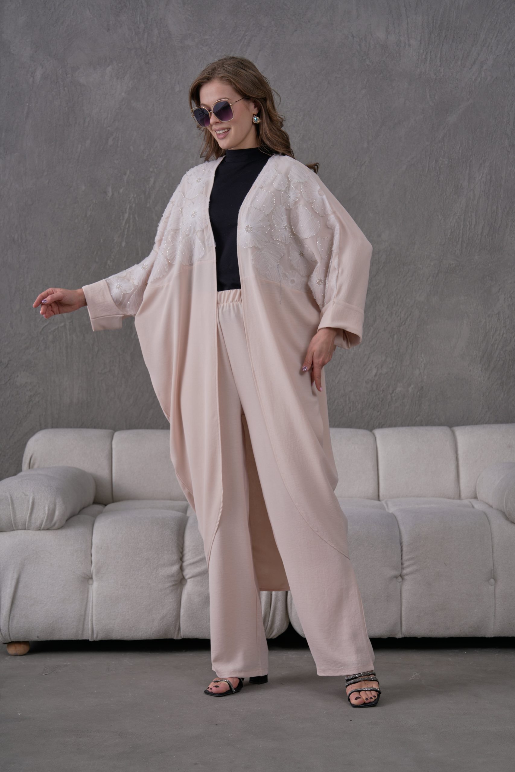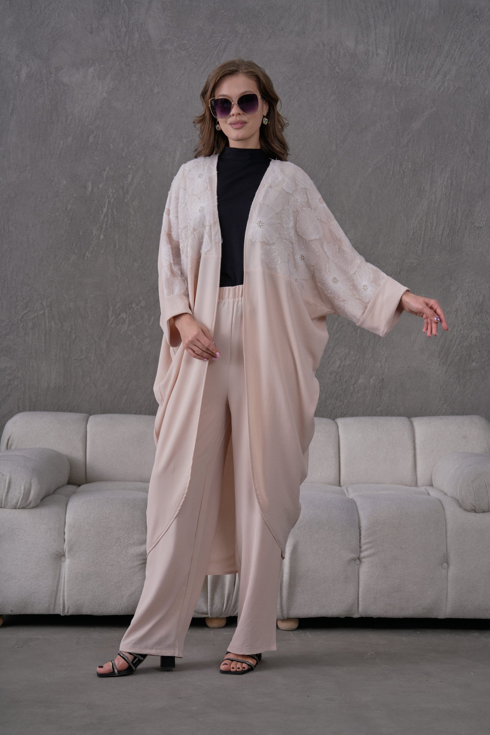 | Parça Sayısı | Nakış Keten Kimono Hırka+ Geniş Paça Pantolon |