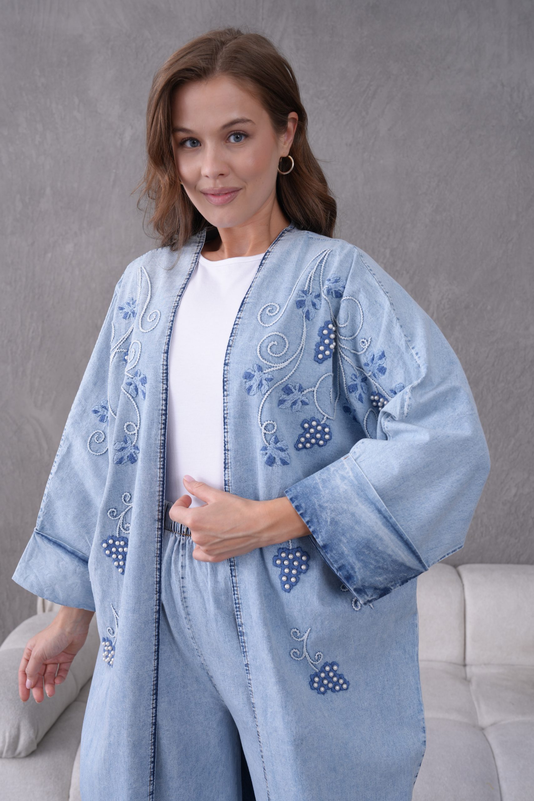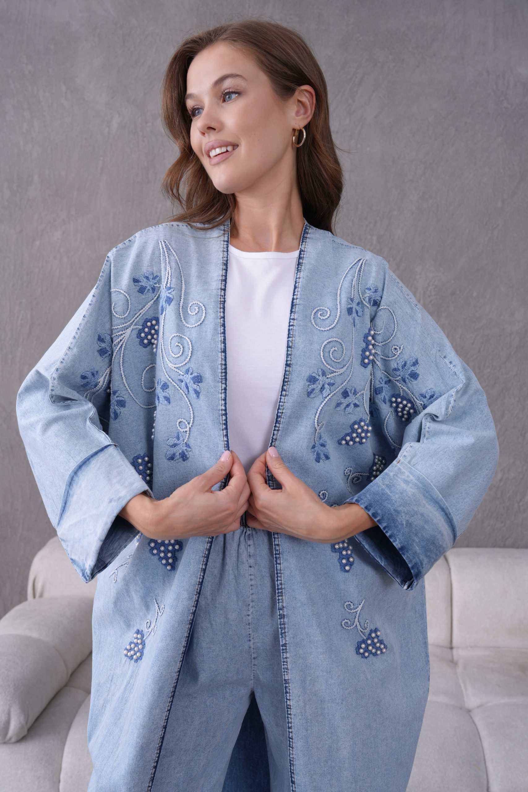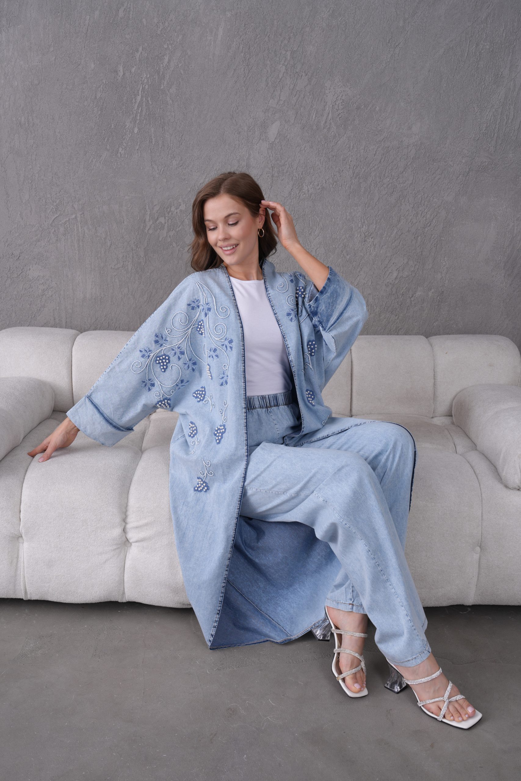 Denimin zamansız ve güçlü duruşu, usta işi boncuk nakışları ve modern kesimlerle yeniden yorumlanıyor. ELORA’nın muhafazakar giyim standartlarını estetik bir vizyonla buluşturduğu bu ikili takım; hem günlük şıklığınızda hem de özel davetlerde gardırobunuzun en iddialı parçası olacak.